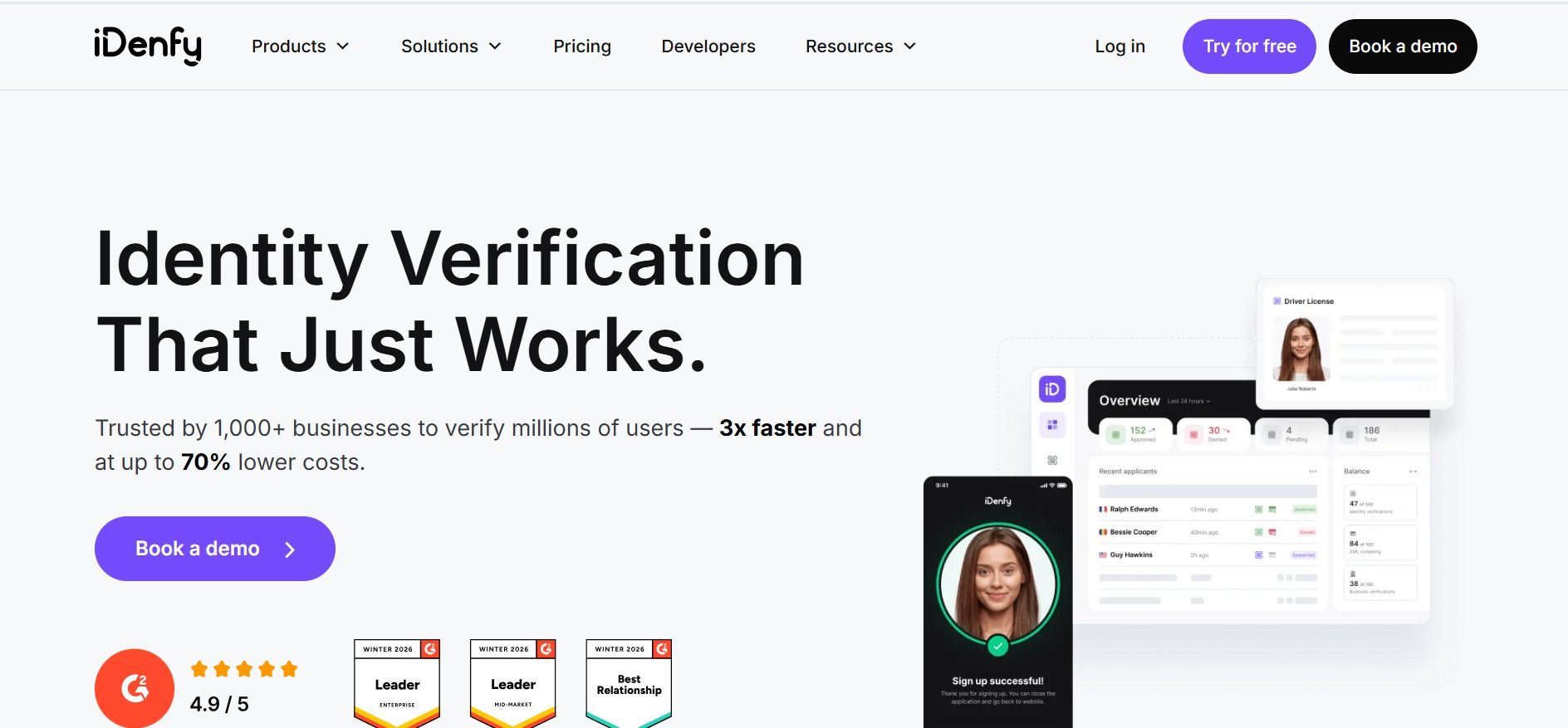 • Advanced Identity Verification: iDenfy offers a suite of advanced identity verification solutions, including document verification, facial recognition, and biometric authentication.