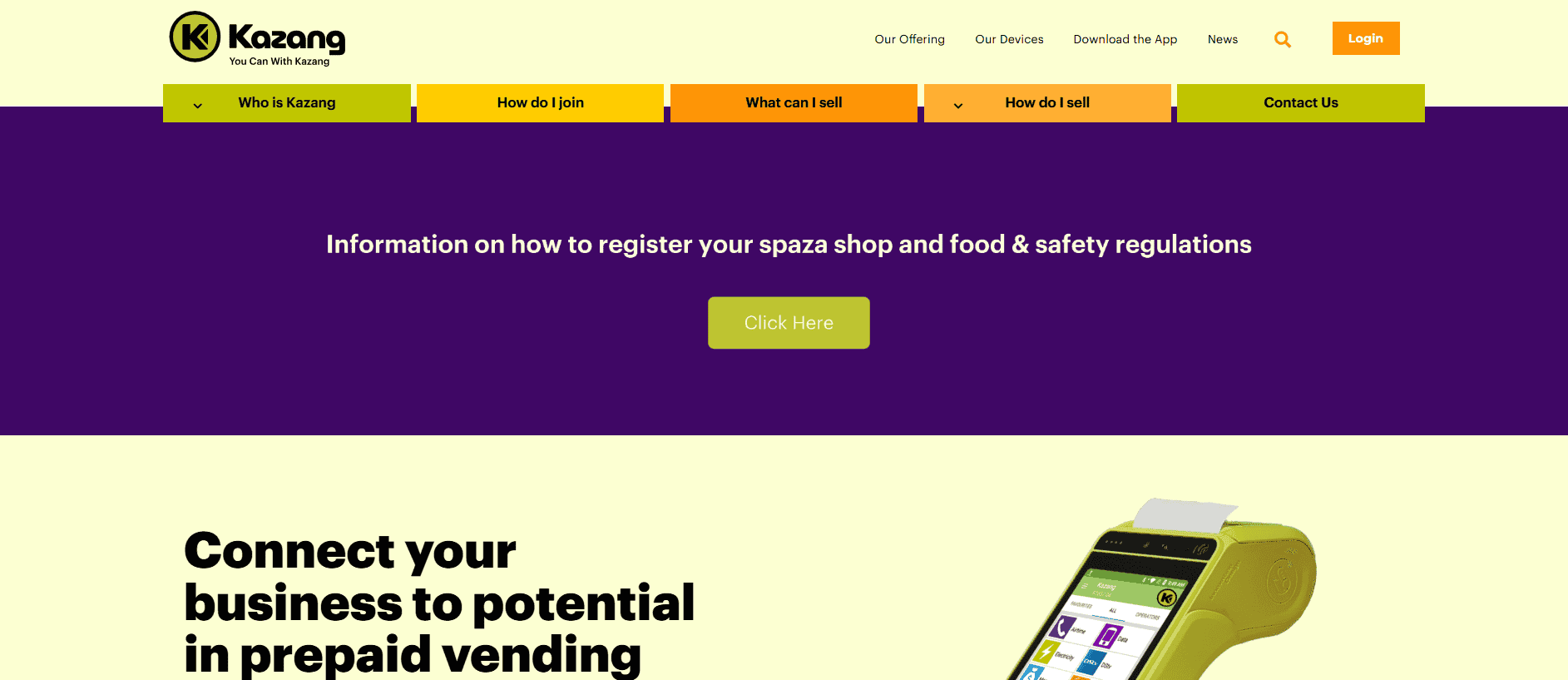 Kazang is a South African fintech company that provides electronic vending solutions. It offers services such as prepaid electricity, airtime, and bill payments through a network of point-of-sale devices. Kazang aims to empower small businesses by enabling them to offer essential services to their communities.