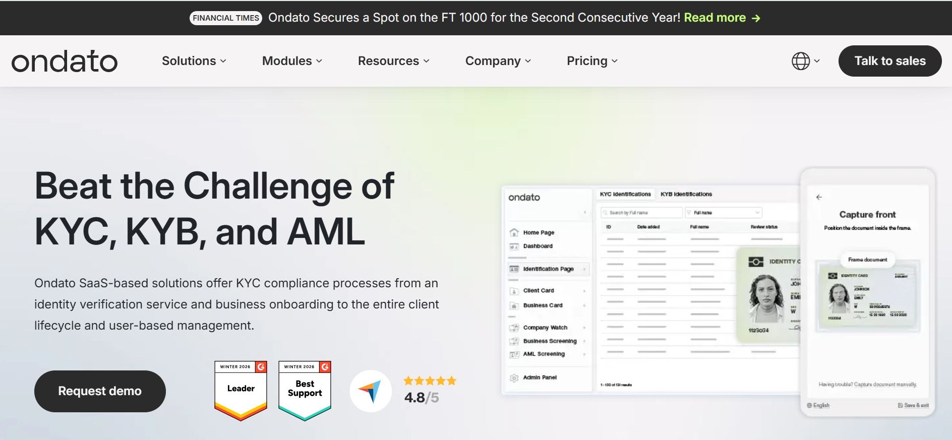 • KYC/AML Compliance: Ondato helps businesses comply with Know Your Customer (KYC) and Anti-Money Laundering (AML) regulations.