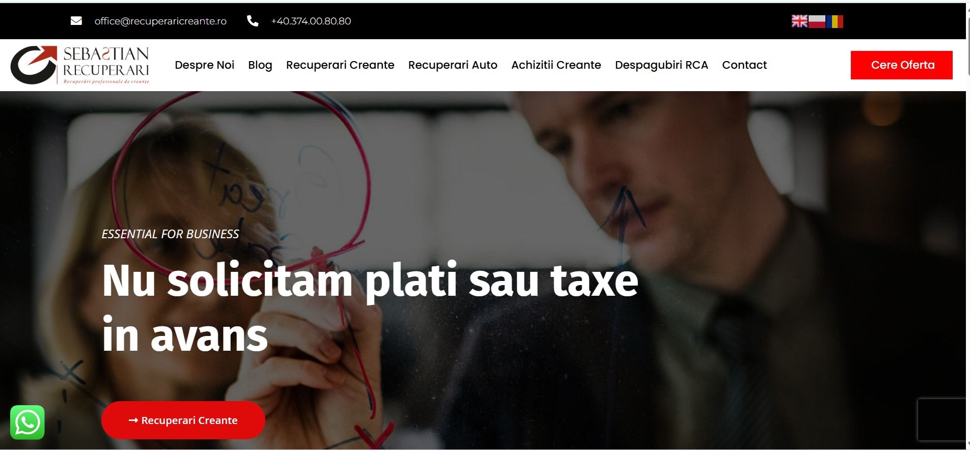 Sebastian Recuperari is a debt recovery agency in Romania that helps businesses manage and recover overdue payments efficiently. The company combines professional collection strategies with legal expertise to minimize financial losses and maintain positive client relationships.